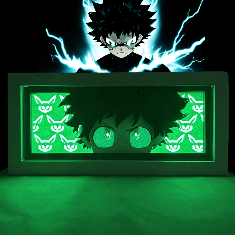 Capture the heroic spirit of Deku, the inspiring protagonist of “My Hero Academia,” with this vibrant LightBox. It represents Izuku Midoriya, aka Deku, with his determined eyes, ready to take on any challenge. The glowing green background symbolizes his unwavering will and the One For All energy flowing within him.