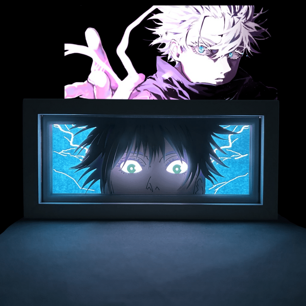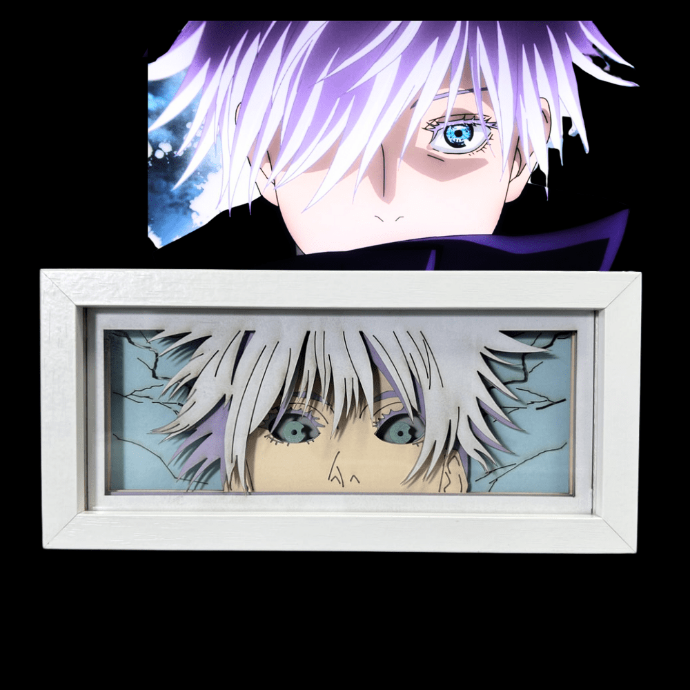 Enhance your space with the quiet and mysterious strength of Satoru Gojo, embodied in this elegant LightBox. Capturing his unique power of the Six Eyes, the design highlights his extraordinary abilities and unparalleled charisma. The sky blue lighting, crossed by white lightning, reflects his control over celestial energy and his undisputed aura of the most powerful sorcerer Jujutsu.