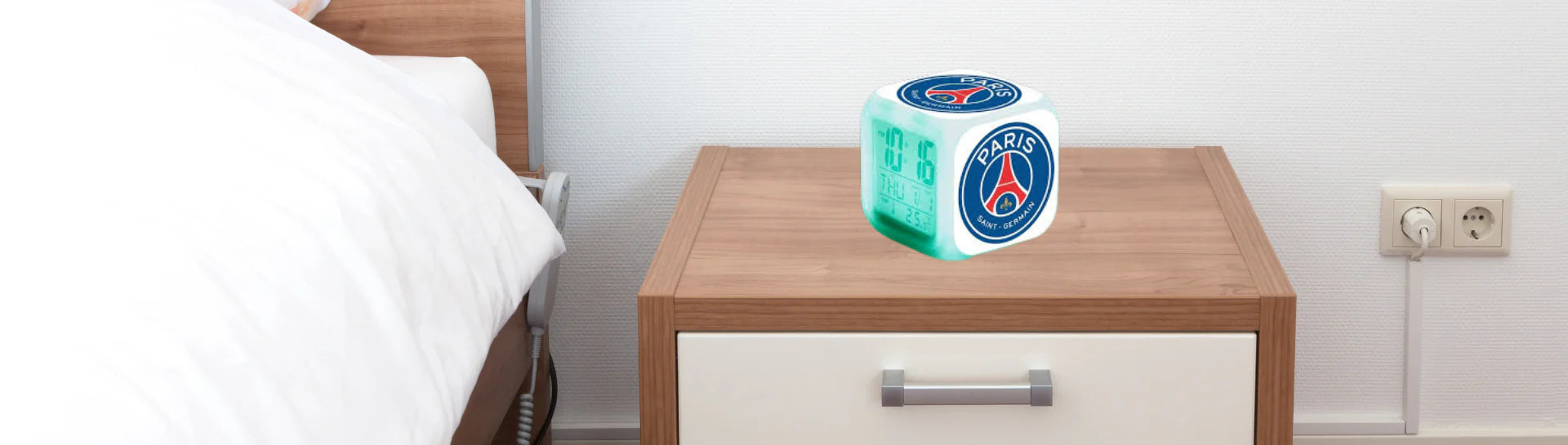 - 🔴🔵 Reloj despertador Paris Saint-Germain (PSG) – Ideal para los fanáticos del club capitalino.