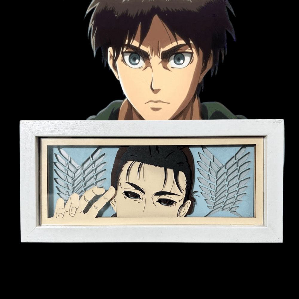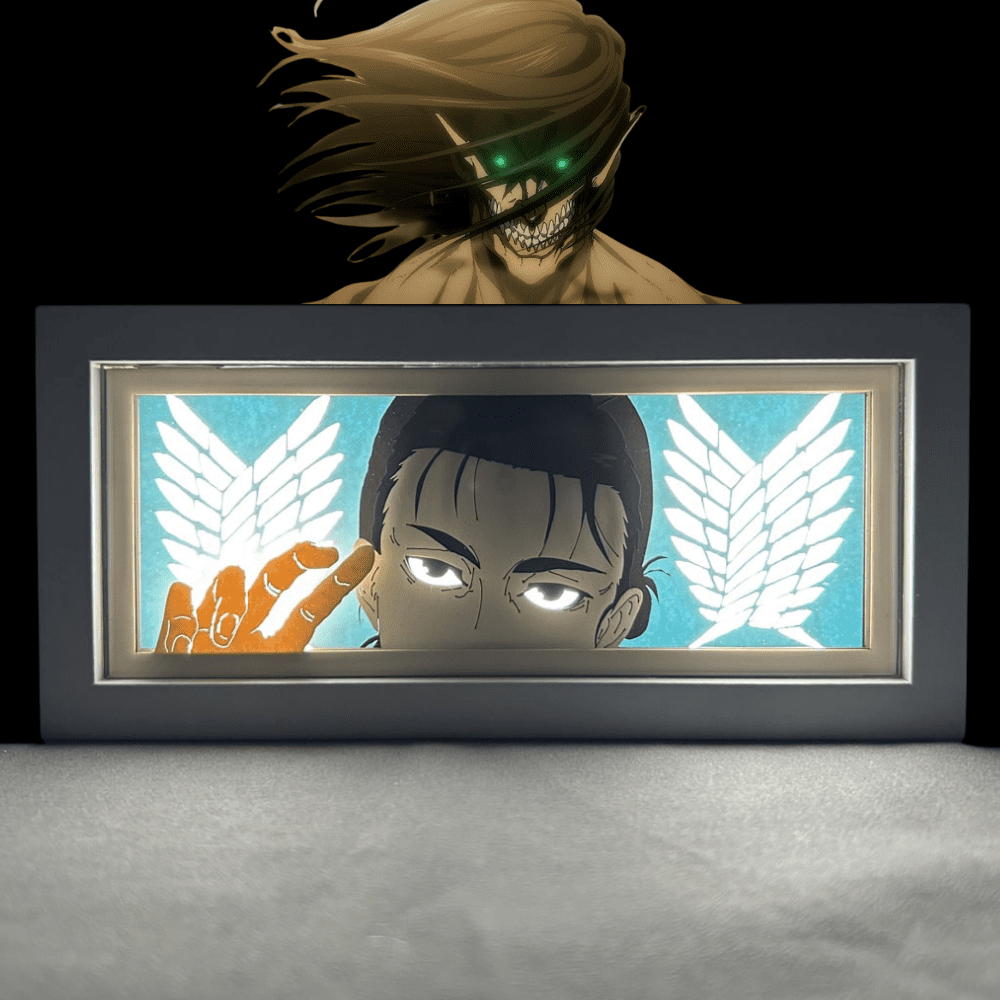 Éclairez votre espace avec l'intensité et le courage d'Eren Jaeger grâce à cette LightBox Édition Détermination d'Acier. Inspirée du protagoniste passionné de "L'Attaque des Titans", cette LightBox capture parfaitement son esprit combatif et sa détermination sans faille à protéger la liberté de l'humanité.