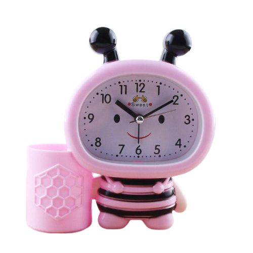 Mais ce n'est pas tout ! Nous avons pensé à tout, car nous savons que vos enfants ont aussi des devoirs à faire à la maison. C'est pourquoi nous avons ajouté un porte-crayon à ce réveil Abeille Jaune, pour qu'il puisse rester organisé tout en s'amusant.
